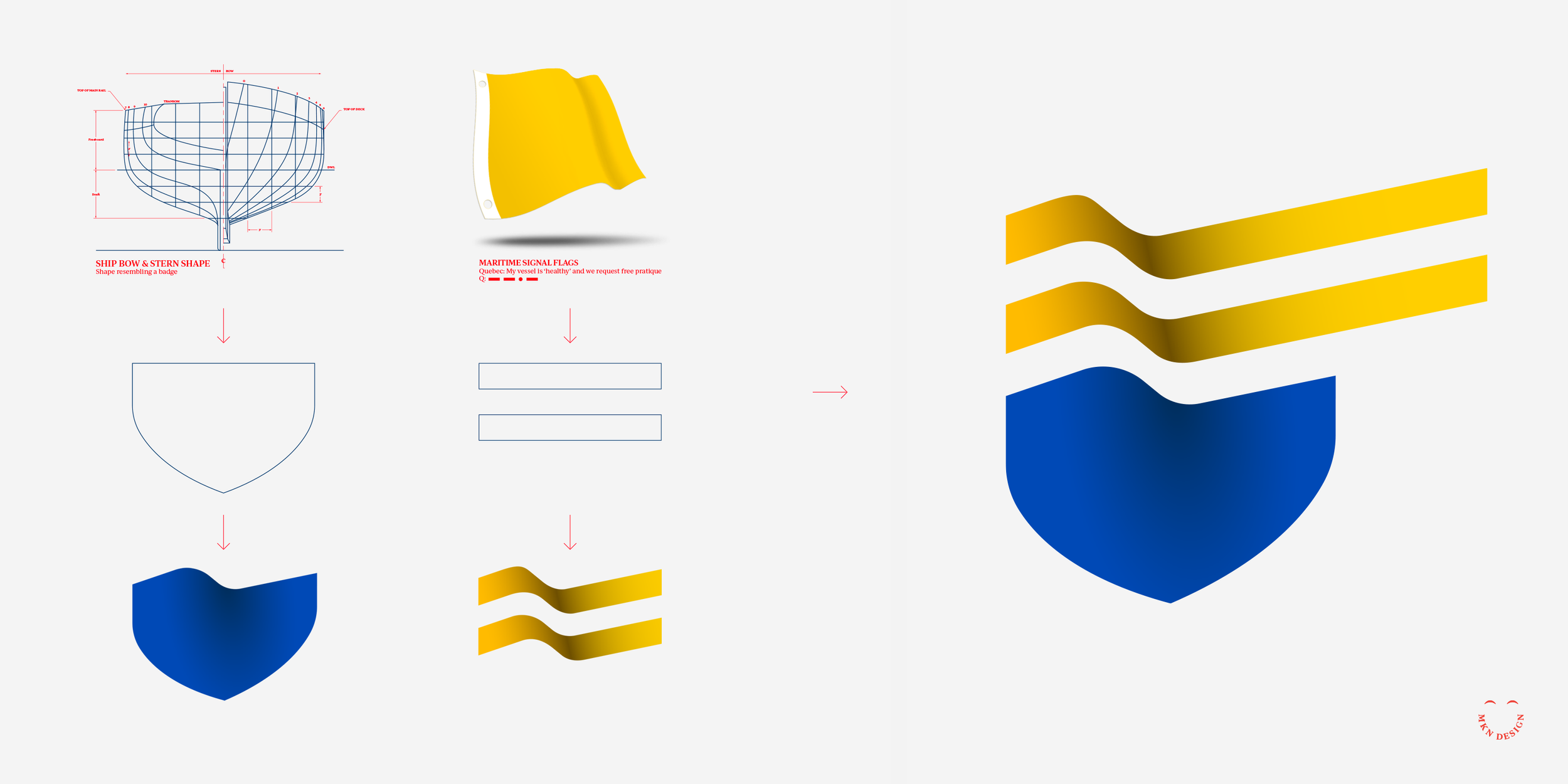 During my exploration phase, I focused on incorporating marine motifs. I used a boat bow with the addition of two flowing lines (acting as a flag), these two combined elements created a badge. I chose a bold typeface, Acumin Variable designed by Robert Slimbach from Adobe Originals to commitment the logomark. With the additional of color, reflecting a nautical theme I added depth to the mark to give it presence. Also, by angling the logo I created a sense of movement, making it feel more modern and energetic. The final execution integrates the logomark (badge) and logotype (company name) to reflect the company's experience, excellence and superior products.